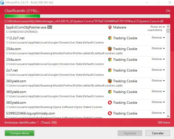 Si Malwarebytes Anti-Malware no ha detectado nada o ha detectado algo, puede que no haya sido todo lo que puede estar afectando a tu ordenador, de ahí que se recomiende utilizar la herramienta conocida como HitmanPro, una herramienta complementaria muy útil, para lo cual tendrás que: