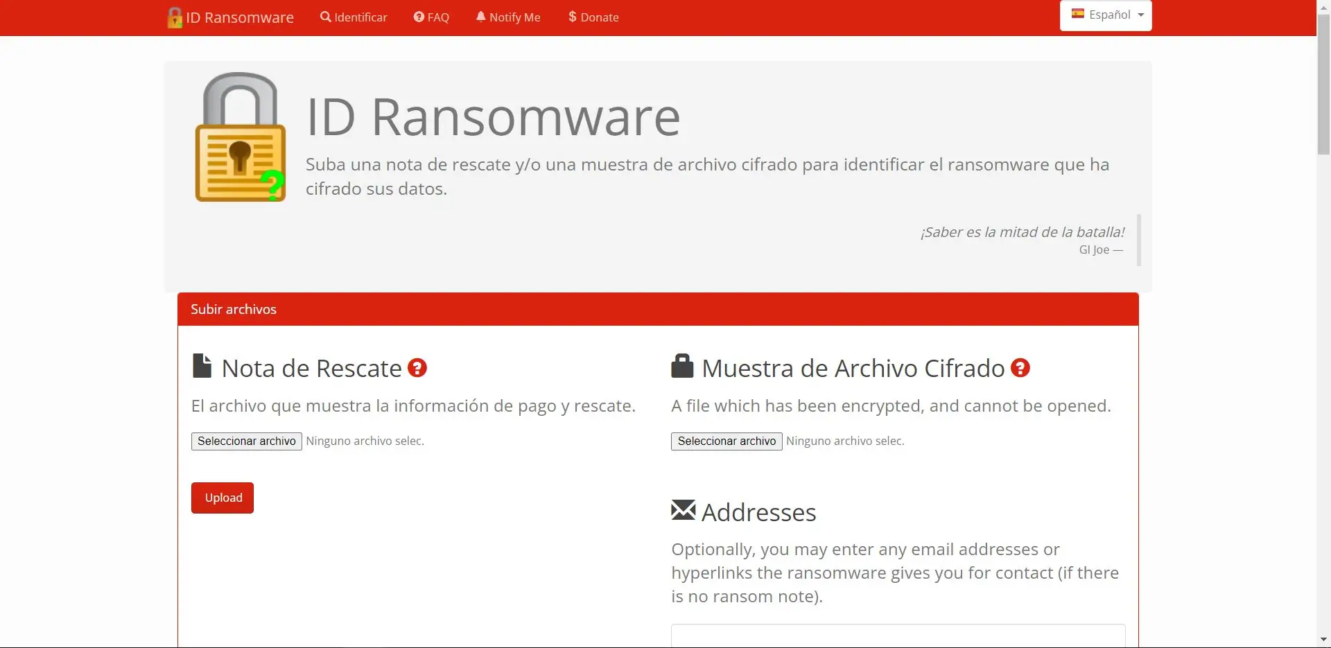 Para esto, puedes usar un sitio web llamado ID Ransomware. Este sitio web te permite identificar qué ransomware tienes y si es descifrable o no. Puedes subir tu nota de rescate o un archivo cifrado de muestra, y el sitio web te dirá si el ransomware es descifrable.