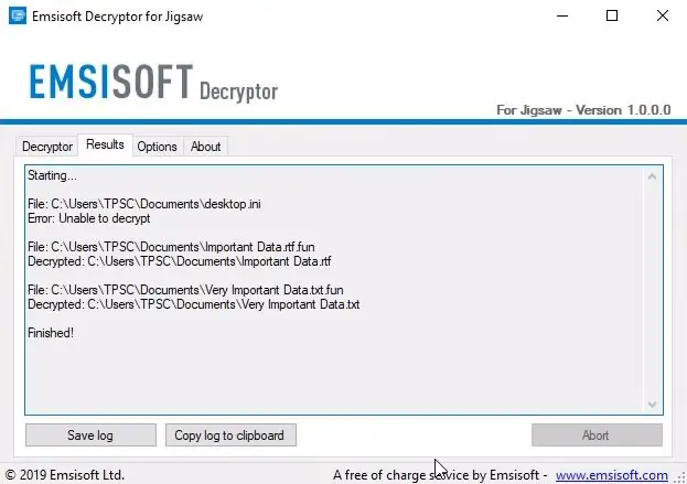 Por ejemplo, si estás infectado con el ransomware Jigsaw, puedes descargar el descifrador de Jigsaw y usarlo para escanear las carpetas para los archivos cifrados y luego descifrarlos.